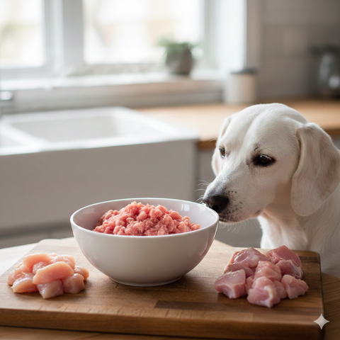 Sensitive dogs do best with a “bland” raw protein at first.